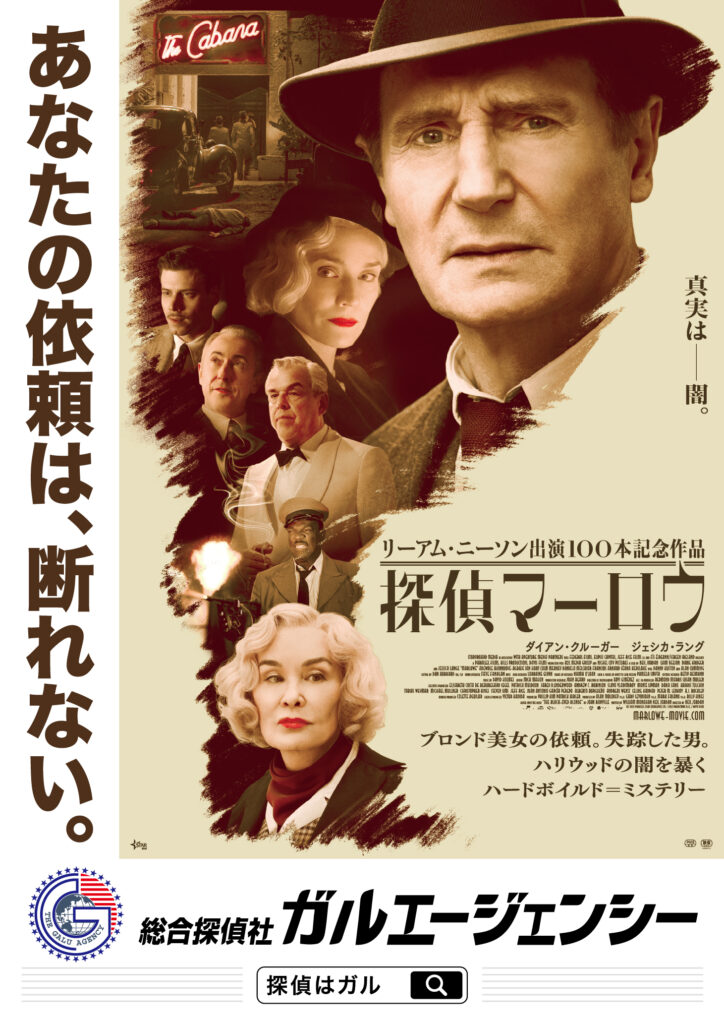 ガルエージェンシー船橋 > お知らせ > お知らせ ニュース 探偵 探偵マーロウ×探偵ガルエージェンシー コラボポスターが完成! 2023年5月27日 2023年6月16日(金)公開のリーアム・ニーソン 出演100本記念作「探偵マーロウ」とガルエージェンシーのコラボポスターが完成しました! 永遠のダンディズムの象徴 探偵 #フィリップ・マーロウ ブロンド美女の依頼に立ち上がる ハードボイルド=ミステリー作品となります。 動画はこちらからどうぞ Twitter Share Pocket Hatena LINE コピーする -お知らせ, ニュース, 探偵 -ガルエージェンシー, ガルエージェンシー船橋, コラボポスター, ダンディズム, ハードボイルド, フィリップ・マーロウ, ブロンド美女, リーアム・ニーソン, 原作 黒い瞳のブロンド, 探偵, 探偵マーロウ, 映画